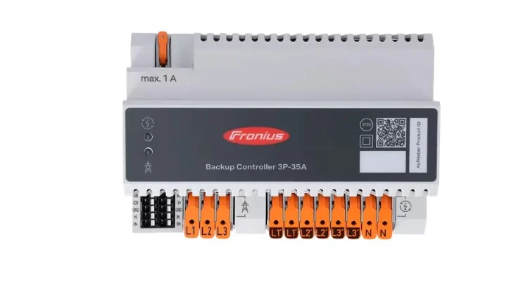 Distorsiune totala armonica <3% @Pnom (230/400 VAC 50Hz) Certificate si standard IEC 60947-6-1 Tensiune nominala 400/230 V Putere nominala 24 kVA Curent maxim 35 A Frecventa retea 50 Hz Tip retea TN-C-S, TN-S Latime 144 mm Inaltime 100 mm Adancime 66 mm Greutate 0,97 kg Clasa de protectie IP20 Temperatura ambientala minima -20°C Temperatura ambientala maxima 60°C Umiditate permisa 50 % Altitudine maxima 2000 m Clasa de emisii de inteferenta B Sectiune minima de cablu (conductor faza/nul) 1 mm2 Sectiune maxima de cablu (conductor faza/nul) 10 mm2 Sectiune minima de cablu(comunicatie date) 0,14 mm2 Sectiune maxima de cablu(comunicatie date) 1,5 mm2 Sectiune minima de cablu(conductor nul la contor bidirectional) 1 mm2 Capabilitate FRT DA Tip montaj Sina DIN Fronius Primo si Symo GEN24 Plus Frecventa in regim de backup poate fi setata in intervalul 45-55 Hz Fronius Backup Switch Solutie de comutare manuala Curent maxim ce poate fi preluat – 63 A Instalare posibila in tabloul general al locatiei Contor bidirectional Fronius Smart Meter 63A-1 Fronius Smart Meter 63A-3 Fronius Smart Meter 50kA-3 ( cititorii de curent se achizitioneaza separat) Fronius Smart Meter TS 100A-1 Fronius Smart Meter TS 65A-3 Fronius Smart Meter TS 5kA-3( cititorii de curent se achizitioneaza separat) Fronius Smart Meter IP Baterie BYD Battery-Box Premium HVS/HVM LG Flex O unitate de stocare este necesara pentru a functiona in regim Full Backup Regimul Full Backup nu este posibil pentru invertoarele din gama Fronius Symo GEN24 3-5 Plus Clasa de performanta Primo GEN24 Plus 3 - 6 Putere maxima – 5 secunde – 6200 VA 8 - 10 Putere maxima – 5 secunde – 11024 VA Symo GEN24 Plus 6 – 10 Putere maxima – 5 secunde – 12400 VA Putere continua per faza – 3680 VA Putere maxima per faza – 5 secunde – 4133 VA 12 SC Putere maxima – 5 secunde – 12765 VA Putere continua per faza – 4133 VA Putere maxim per faza – 5 secunde – 4255 VA